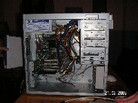 OMEGA NETWORKING, SOUND, USB & OTHER TRICKS On Monday 21st February 2005, Bryan Hogan delighted ROUGOL by demonstrating the almost legendary MicroDigital Omega. We even had the benefit of having a second Omega user (Stewy) present, to assist Bryan in his demonstration. Stewy chipped in with theatrical aplomb on more than one occasion. This was the first time an Omega PC has been seen in action at ROUGOL, and Bryan also had it networked to his A4 laptop. Networking worked flawlessly as files were flung back and forth between the two computers. In fact, it was via the network that Bryan installed Select on his Omega. MicroDigital supply RISC OS 4, but Bryan installed Select by copying the contents of his RiscPC Hard Disc over the network (including !Boot). A quick reboot of later and Select was running on the Omega! Perhaps unsurprisingly, it turns out that desktop use (such as screen redraw and window dragging) are much quicker under the 'soft-loaded' Select than under RISC OS 4. IT'S ALIVE! WELL, IT WORKS OK, so maybe the Omega's not quite up to A.I. (although who knows what might happen when you plug an X-Scale in!) but we were treated to an mp3 rendition of the classic Aerosmith track "Crying" to demonstrate that - contrary to popular myth - sound on the Omega does indeed work. Sound recording and playback were also demonstrated by means of a parallel port audio sampler. Various demos including the famous Iron Dignity (out 1999) were shown to work and Doom was also running properly (both with sound of course!). A nice trick was the ability to use an ArtWorks file as the desktop backdrop. Although this is a feature of RISC OS Select, the speed of the Omega makes it more practical to use. Along similar lines, filer thumbnailing also worked well. Bryan also played a charming AVI file (with movieFS), which would probably be tricky, if not impossible, to get an Iyonix to do. See the screengrabs at the end of this report for clearer pictures of the Omega in action. Apart from ROUGOL's projector always trying to 'perfect the image', the only quirk was when (on returning to the desktop from one of the old graphical demo programs) half the mouse pointer disappeared for a few seconds. Stewy then went on to wow the audience with his now infamous (see links at the end of this report) USB device demonstration. As promised (Stewy "never jokes") it was a USB device, and it worked flawlessly with Omega. Shedding light on Omega's USB capability - click on pictures for larger [1024x768] image. SPEEDY As for its overall speed, we could only judge qualitatively. Bryan estimates that generally, it feels "about twice as quick" as a RiscPC. The ever enthusiastic Keith Dunlop pronounced that "the desktop seems sluggish" [compared to an Iyonix - no surprise given the differences between processor speed on the two machines]. However, even Keith was later suitably impressed by Omega's rendering of PDF files, and found himself exclaiming "that's not bad, it's quite quick!" After the meeting, David Lane went home to post on usenet, causing quite a stir on drobe.co.uk. Speculation also ensued that the next version of RISC OS was in fact codenamed "Merlot". Oh dear. Still, that's what you get from holding meetings in the pub - and we wouldn't have it any other way. Cheers! QUESTIONS (answers are an amalgam of comments from Bryan and Stewy) Q. Why did you choose the Omega? A. Parallel port, software compatibility (older programs such as Impression still run natively and fast), no Iyonix at time of ordering, Select. Bryan also mentioned that the Omega had the added appeal of being slightly more interesting/exciting than other computers, for example soft upgradeability with the FPGA. He said that this made the computer feel a bit more Acorn like - a reference to the crazy, hedonistic, "different" days of the old Acorn. Q. What feature do you most want to see next on Omega? A. USB ! Q. Do you use the info forum on MicroDigital's website? A. Bryan: No, mostly just direct support from MD. A. Stewy: Yes, it's a good forum with no advocacy or anything getting in the way. SPEC This Omega was running RISC OS Select, with: * Bryan usually has another (80Gb) Hard Disc installed, but this had been removed prior to transportation for safe keeping. One final point of note - see if you can spot what's printed on the Omega motherboard. Here's a clue. ;-) RELATED LINKS MicroDigital website David Lane's cheeky Usenet posting The original Drobe article (archived for posterity) Light shined on Omega USB - Drobe's updated article Omega LegPuller at ROUGOL meeting - on The Icon Bar Stewy's WIBLI toolbar website (well, he mentioned it at this meeting, so here it is :) SCREENGRABS AND MORE PICTURES |