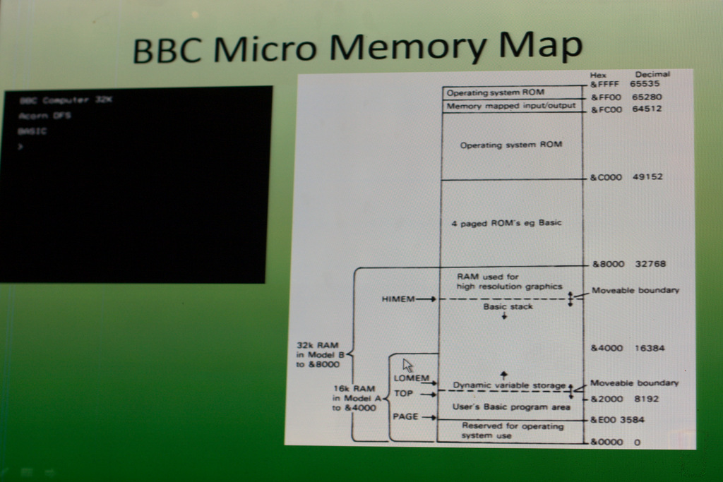 here is a little lesson on the history of the memory map of the BBC Micro. So on the slide here